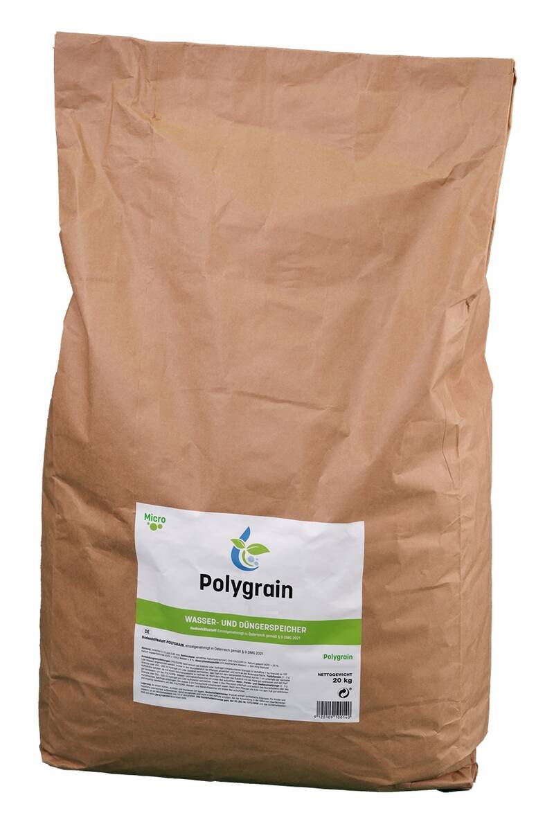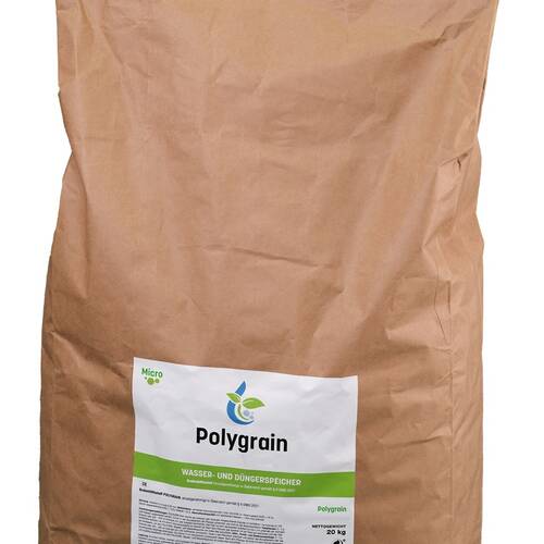 Polygrain ist ein nachhaltiger und biologisch abbaubarer Wasser- und Nährstoffspeicher für Böden und Substrate im Garten-, Landschafts- und Waldbau.