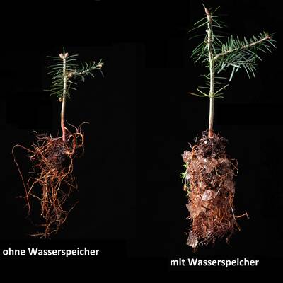 Anwendung erfolgt als Granulat oder Hydrogel (mit Wasserbeigabe) im Wurzelbereich. Polygrain kann ein Vielfaches des Eigengewichts an Wasser speichern und hilft dem Baum Trockenperioden zu überstehen.