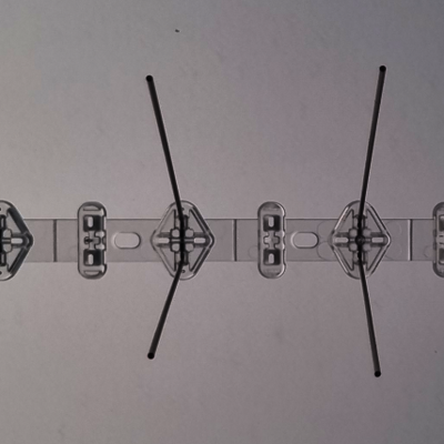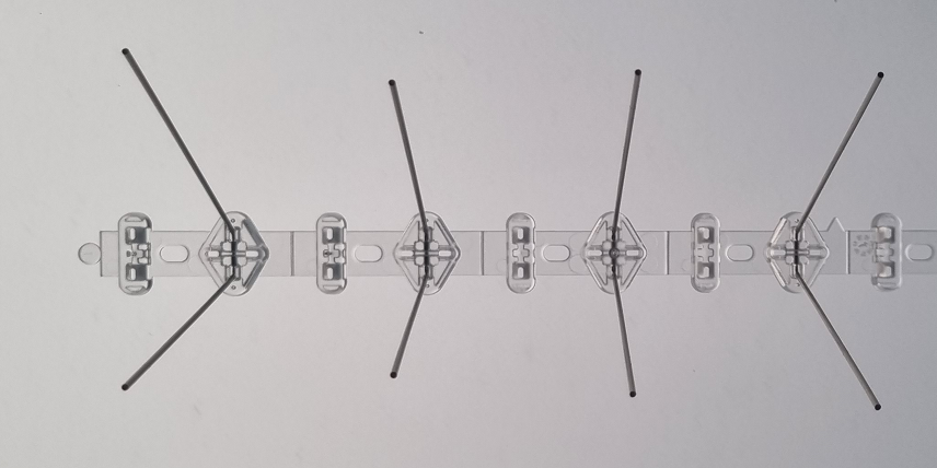 Die Spitzen sind V-förmig auf der Polycarbonatbasis angeordnet und werden mit neutralvernetzendem Silikonkleber, Konstruktionskleber, doppelseitigem Klebeband oder mechanisch befestigt.